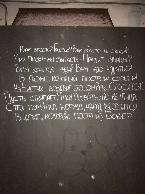 В кафе-баре Бобры и утки на Пятницкой улице вы можете провести время за общением в компании или просто оставить волнующие мысли после рабочих будней, в чём вам с удовольствием помогут наши отменные бармены и наше меню - мы приготовили напитки по вкусу и кошельку! А вы выбираете крепость и вкус (с кислинкой или каким-то особым ароматом). Чтобы ваш бокал не пустовал, мы предлагаем широкий выбор сухих, полусладких, крепких вин из различных сортов винограда.